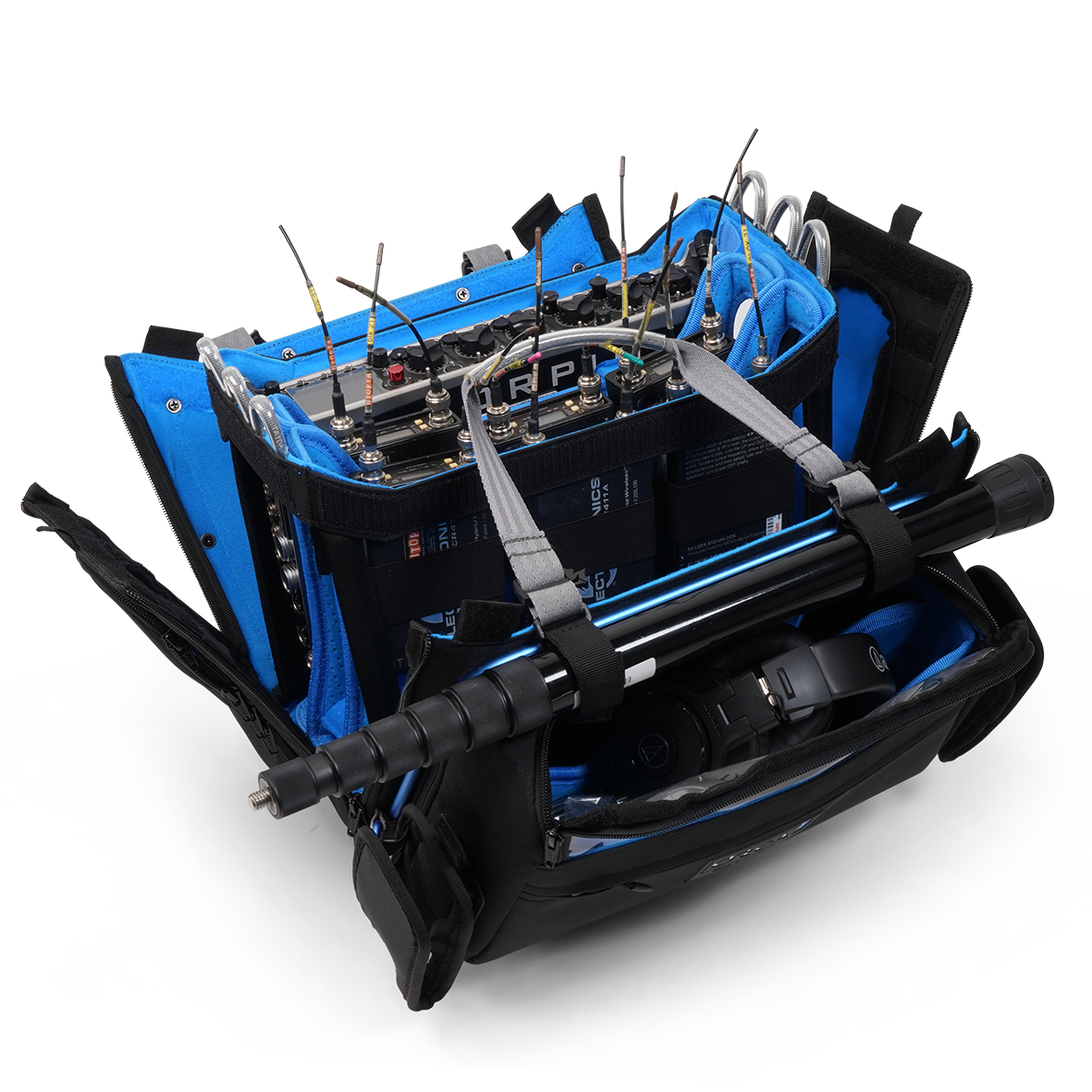 Sound Devices Scorpio, 888, 688といった大型ミキサーを完璧に収納し、保護するために設計された、ORCAのプレミアム・オーディオミキサーバッグです。