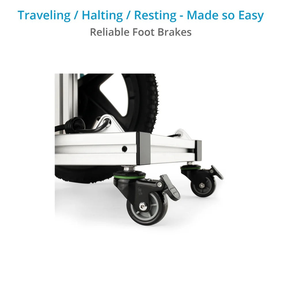 後輪には自転車タイプの空気圧式タイヤを、前輪にはキャスターホイールを採用し、あなたのサウンドミックスカートの機動性を高く維持します。 また、簡単に折りたためる設計により、優れたポータビリティを実現しています。